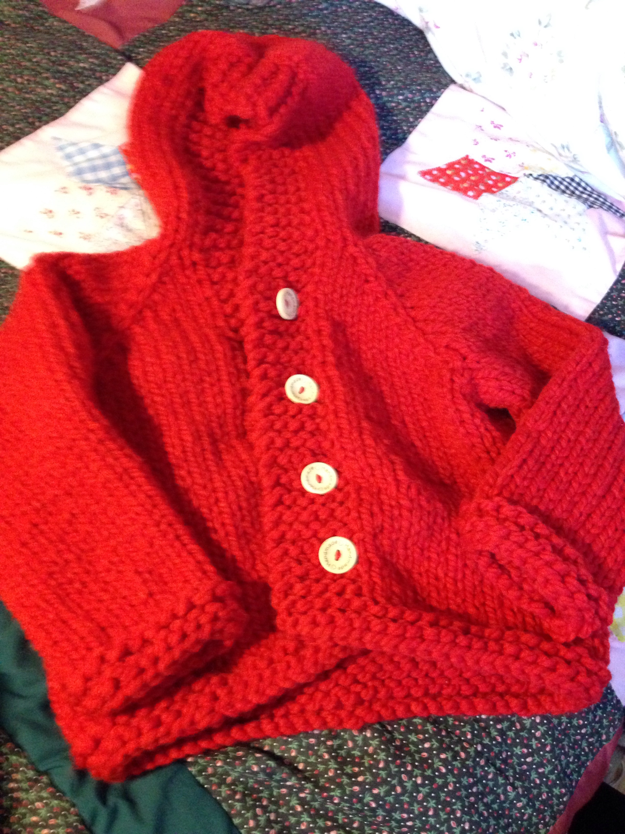Finished this little sweater yesterday. Pattern by Knitting Pure and Simple. Yarn is acrylic/wool blend. I totally forget where I found these wooden buttons. They say, Handmade❤️. I only had four so this little sweater was a perfect opportunity to use them.