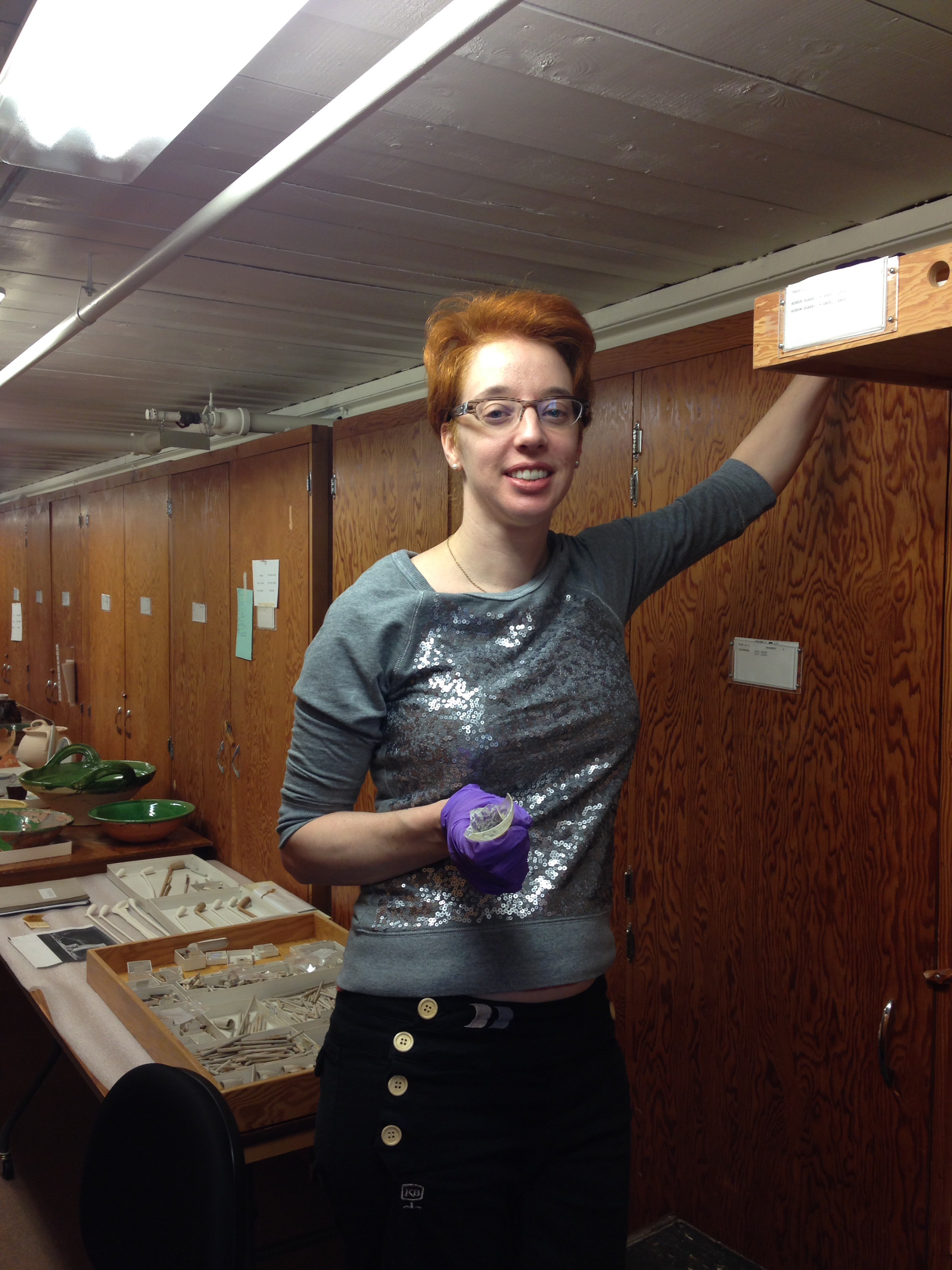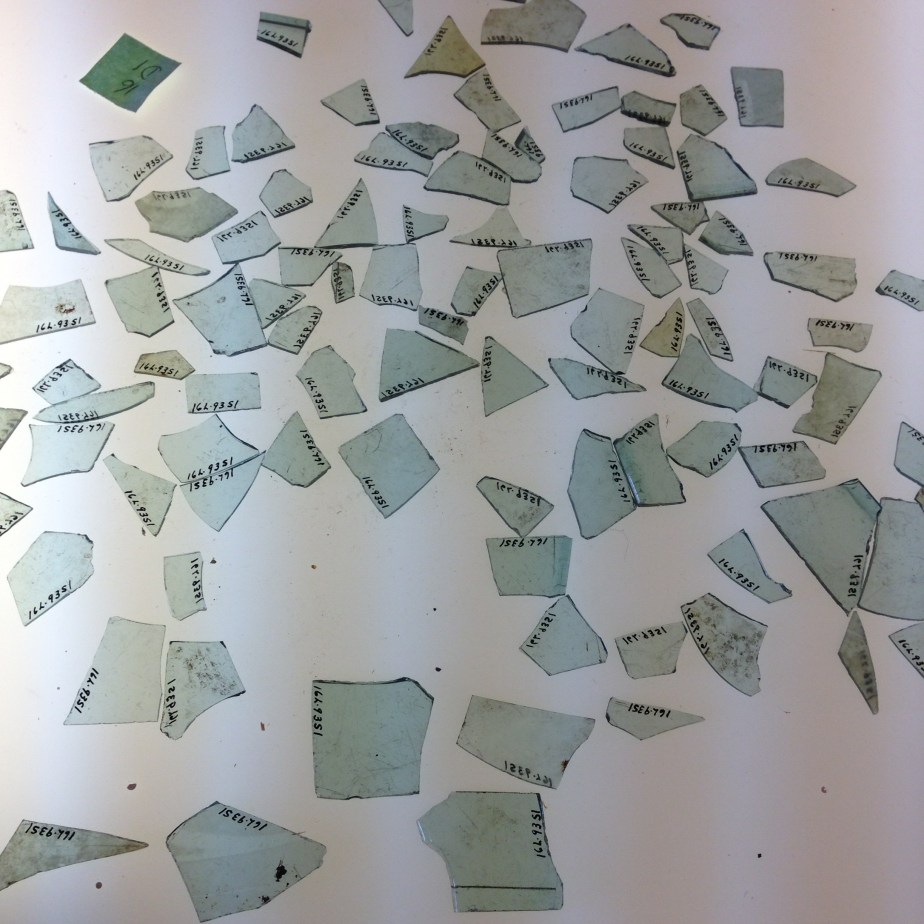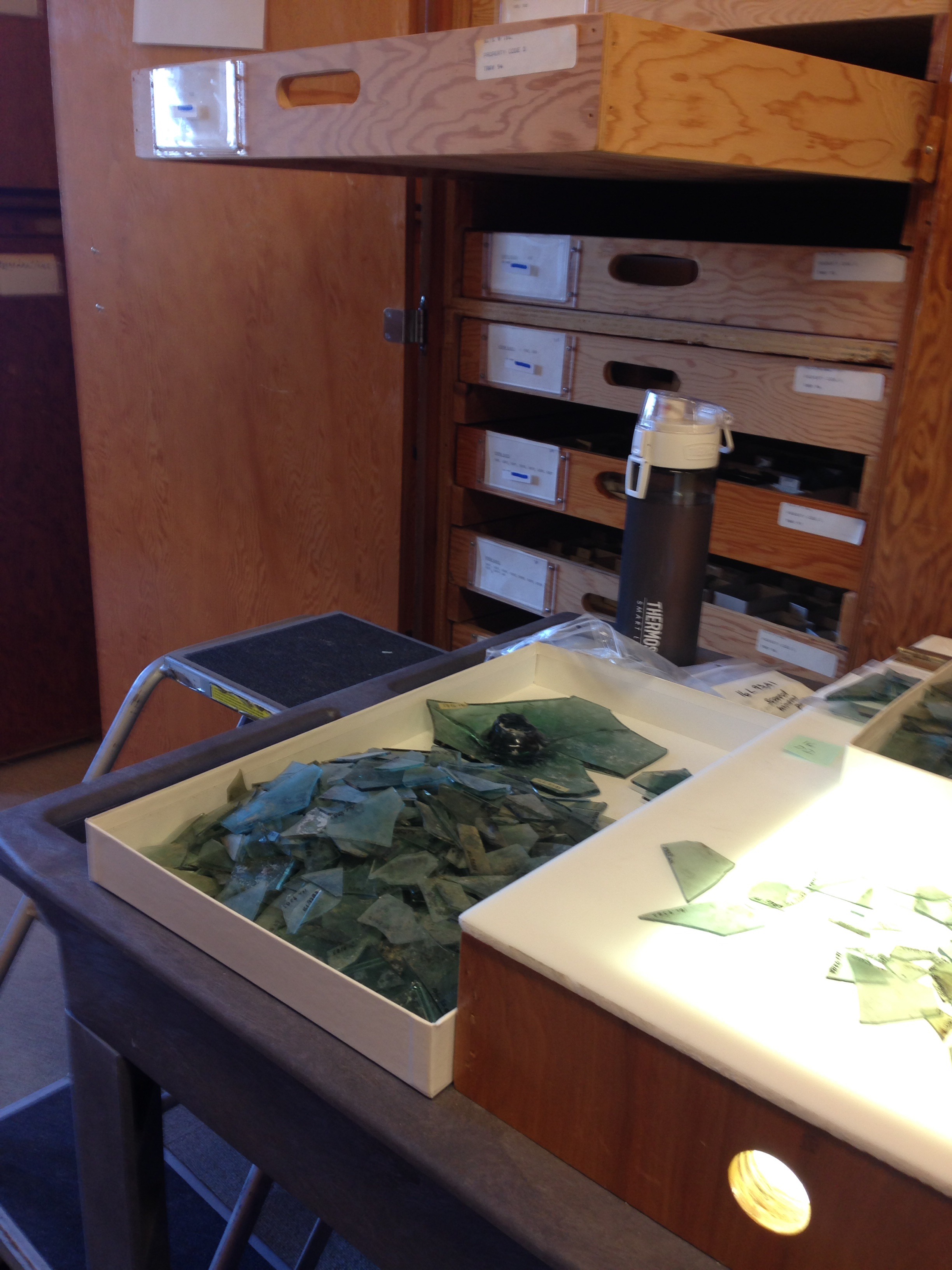 It’s that time of year again. My volunteer vacation at Louisbourg with Parks Canada Archeaology. Today I was working in Collections, which happens to be one of my fav places. Just think 1000’s of artifacts at your fingertips. My project was wading through a mountain of glass trying to find pieces that were unique. It’s like playing with a jigsaw puzzle. Lots of fun for me.