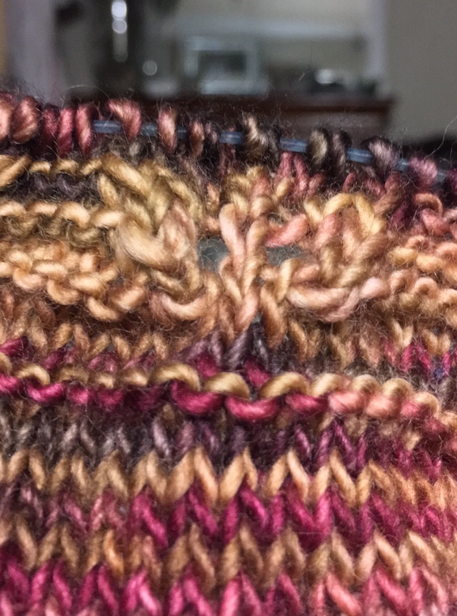 I love the color way and that’s what usually sends me astray. I think the pattern I chose is too fussy for this color way. Can’t wait until I’m finished.