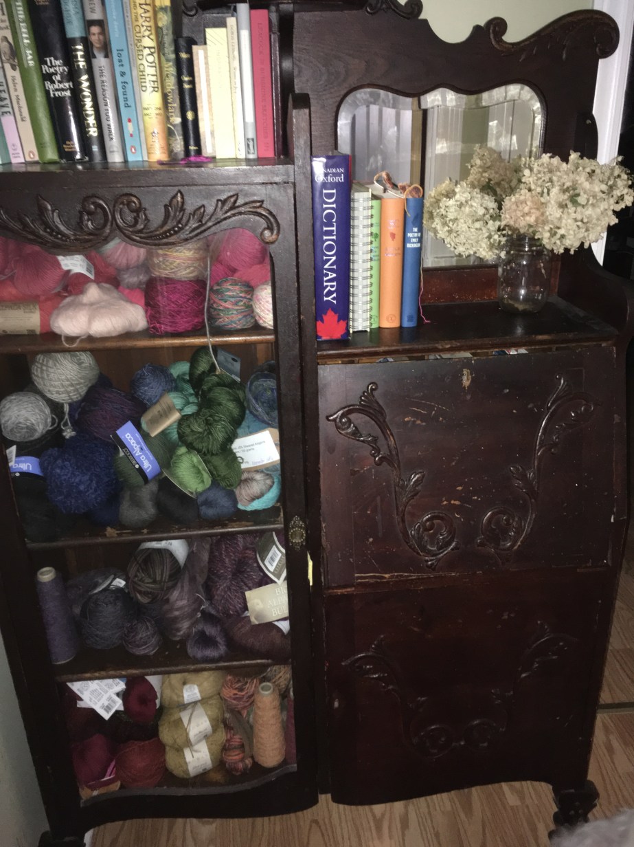 I like seeing the yarn. Before I had a mess of colours and weights in plastic bins.