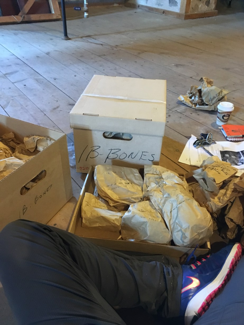 Digging through boxes of bones to find a really old Dog skeleton so it can be studied.