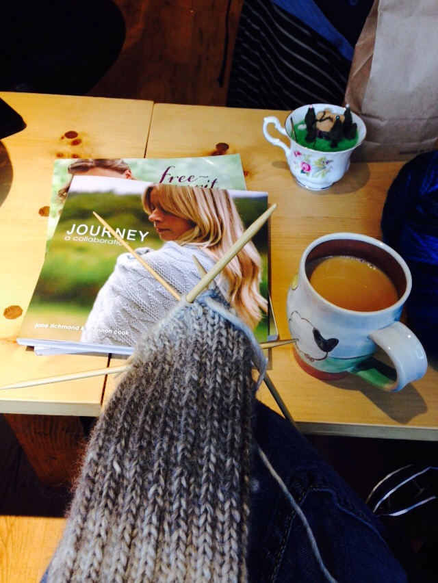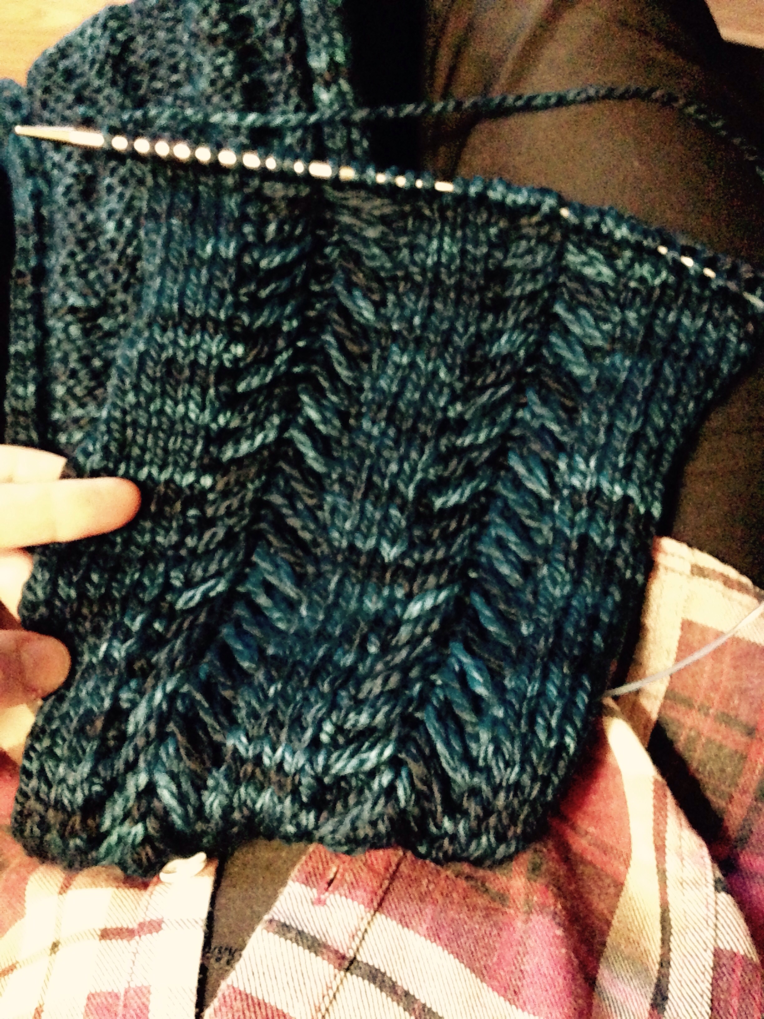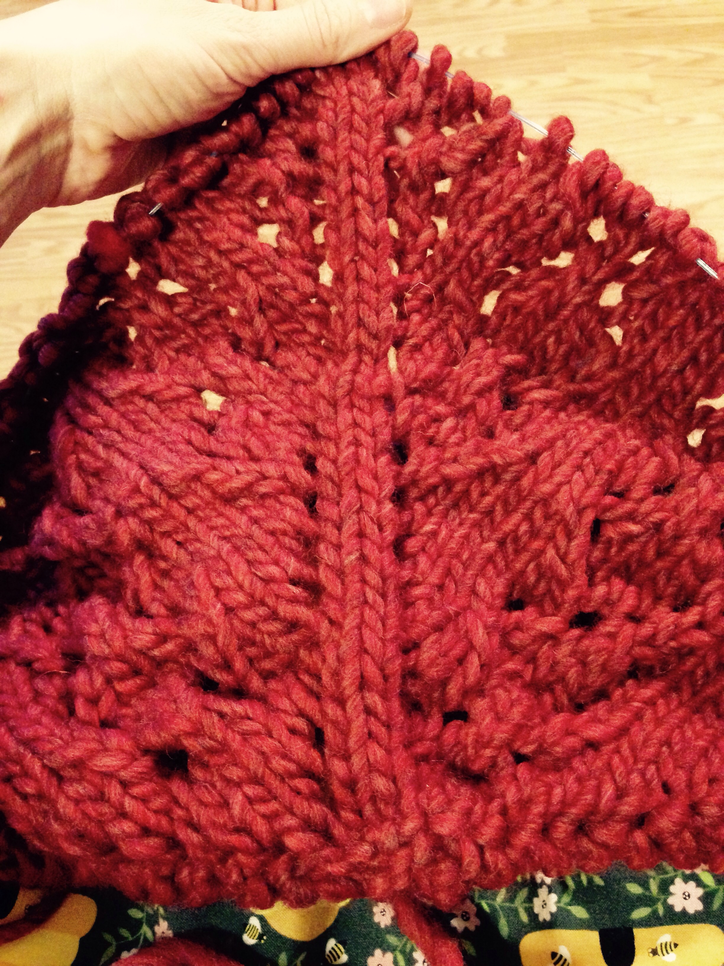I found a beautiful shawl pattern Affirmative shawl, that uses super bulky yarn. It’s going super quick. Very satisfying.
