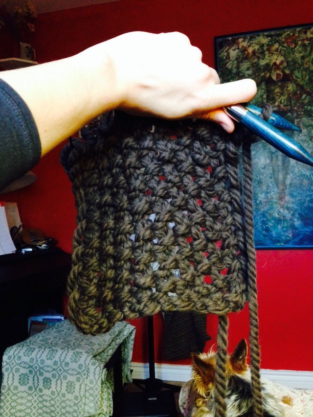 This superbulky yarn is so quick to knit with. I found it at The Loop on Barrington St. I’m knitting a two-toned scarf and only cast on 11 stitches instead of 13. A simple knit and purl pattern great for a beginner. Super quit for a last minute gift. This one is for me to match my vintage 1940’s swing coat.