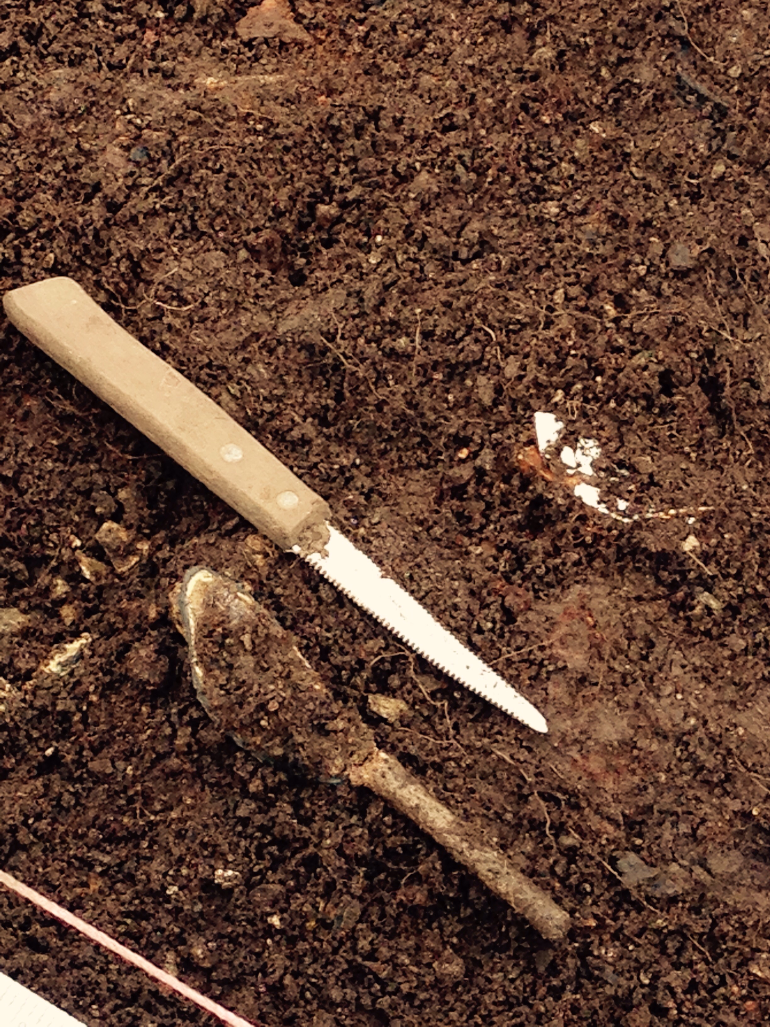 Today turned out to be a beautiful day. The sun was finally shining again. The little family of cormorants I see on my drive into and out of The Fortress was basking in the sunshine on my way to the Inn. The mystery has begun. The artifacts are telling us the story. Every layer gives us a little more information and a lot of times it adds to the mystery. The area I worked in today is a mess of brick and stones, we suspect is a collapsed chimney. I spent most of the day cleaning that up to prepare for overhead pictures in the morning. The House turned Brewery is suppose to have a double fireplace with enough room for two burners on each side. We found a pavé slate floor Yesterday, we removed that today to get to the next level. It’s a tedious process but I find it very grounding.