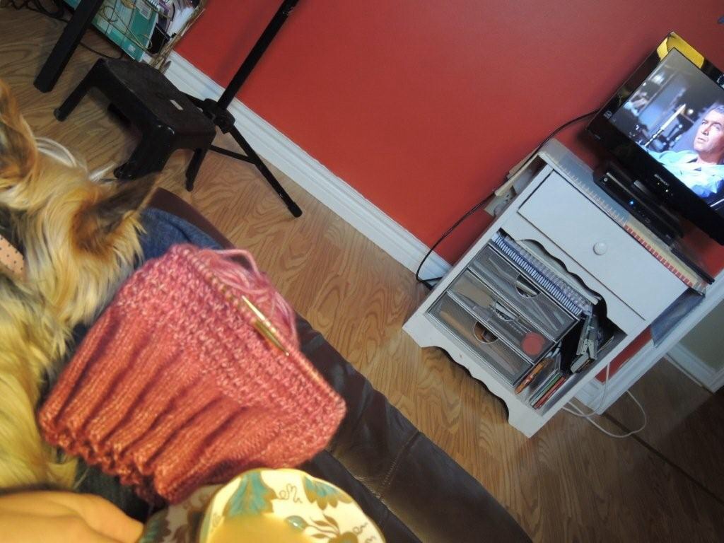 I’m having a relaxing day. Trying to finish D’s Sangria socks. I’m on the last one while being entertained by Hitchcock’s “Dial M for Murder” yet again. Next I think I will watch “Rope” by Hitchcock. Knitting with a cashmere blend is rather nice. If I have any left over I’m going to use it in a shawl I think. There are so many uses for left over sock weight yarn.