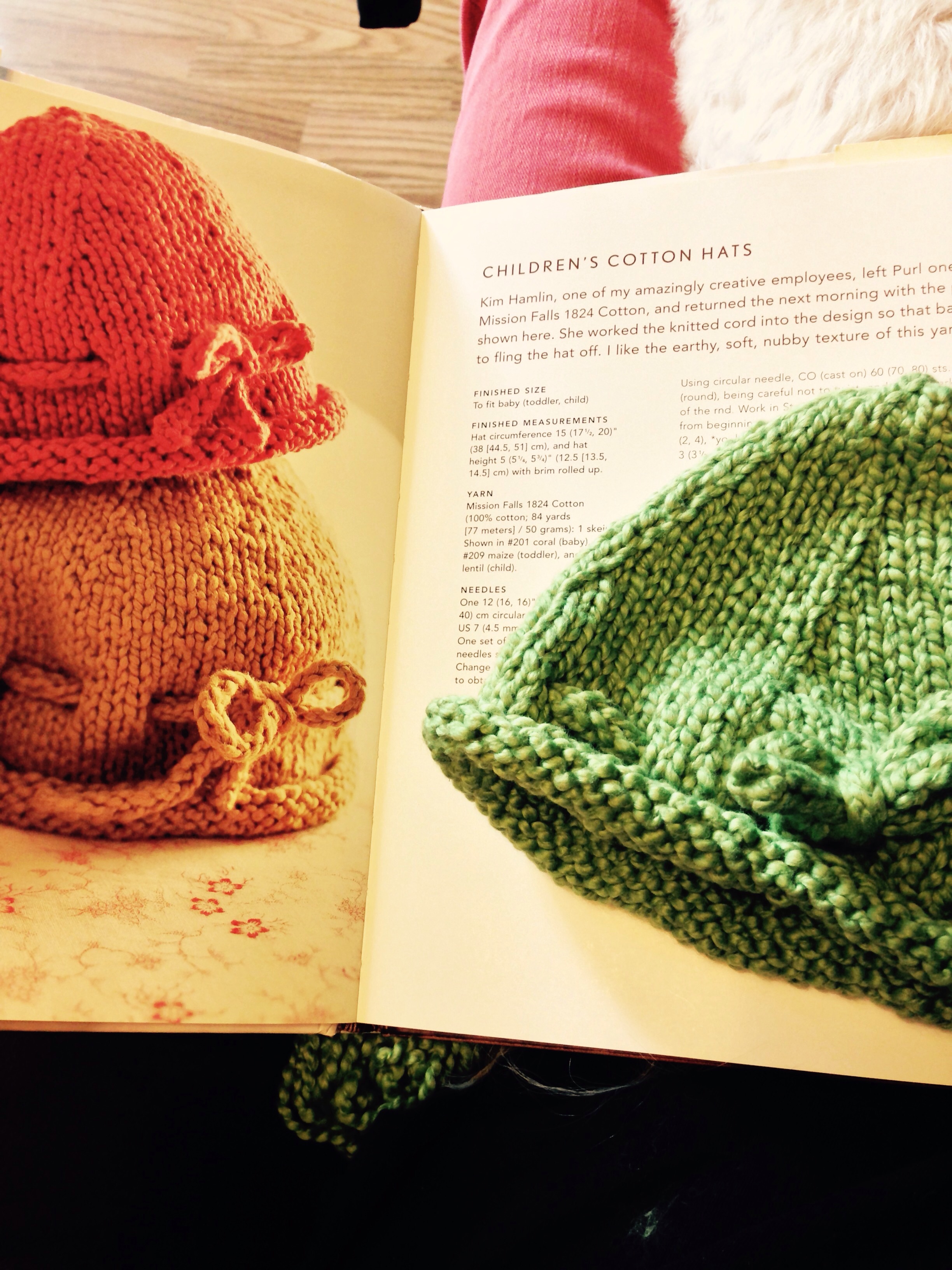 There’s a baby growing in my circle of friends. I’m feeling under the weather today, what a better way to cheer myself up then to start and finish a baby knit. This little cotton hat pattern is from “Last-minute knitted gifts” by Joelle Hoverson. This is my go-to book of classic patterns. Whenever I’m at a loss about what to knit I find the perfect pattern.
