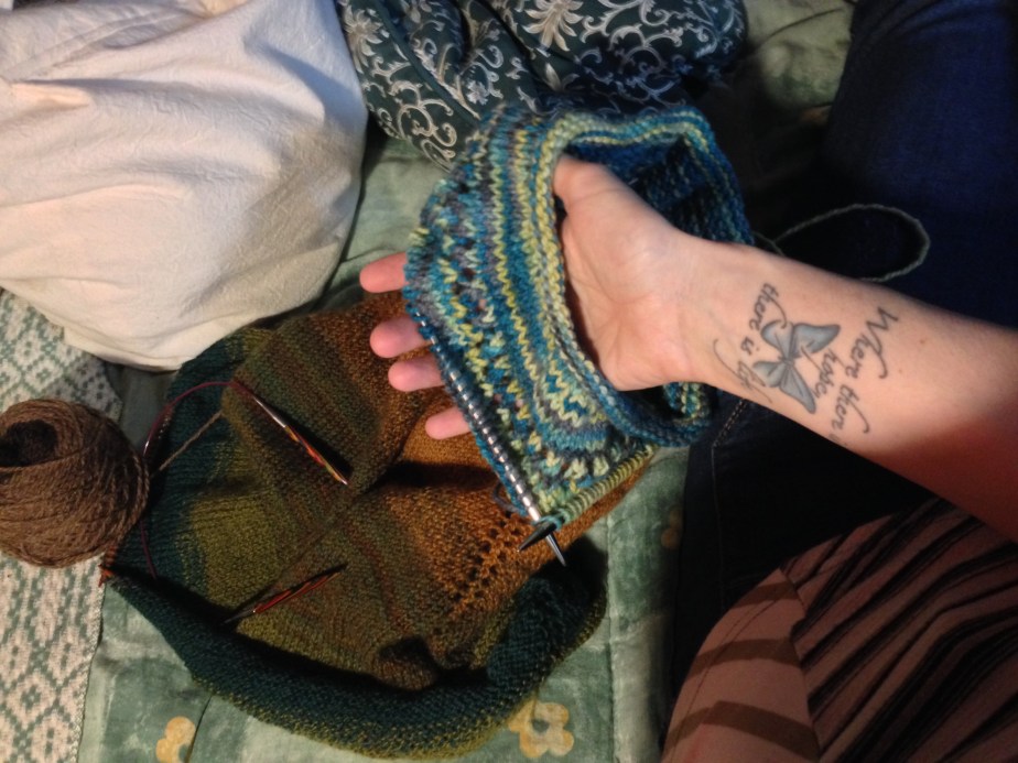 Eyelet Yoke Knitting, Wellness A couple things I’m working on… Mineville project yarn… Haven’t decided what to do with these beauties.