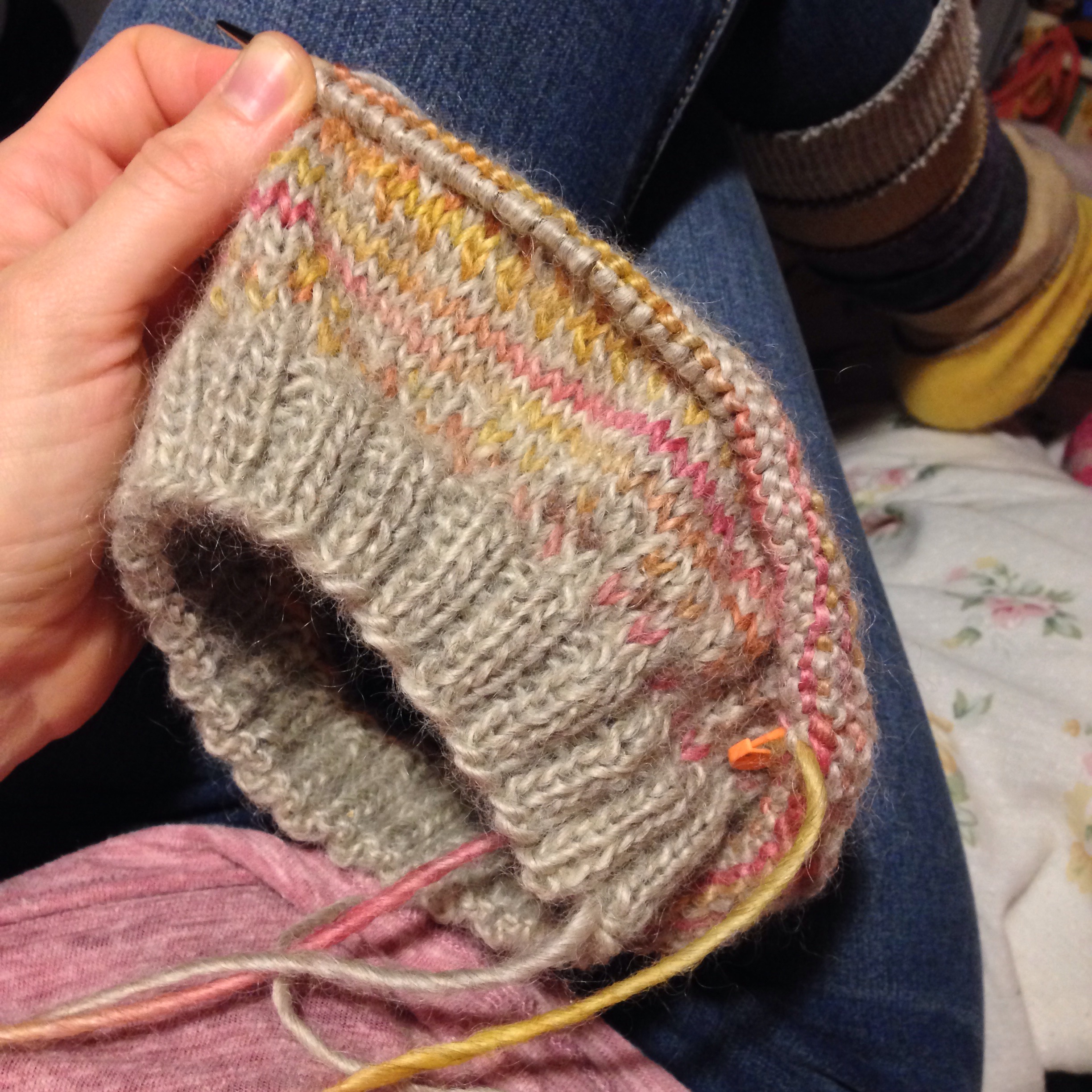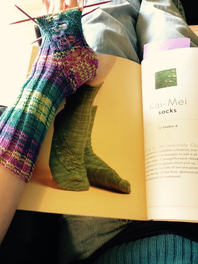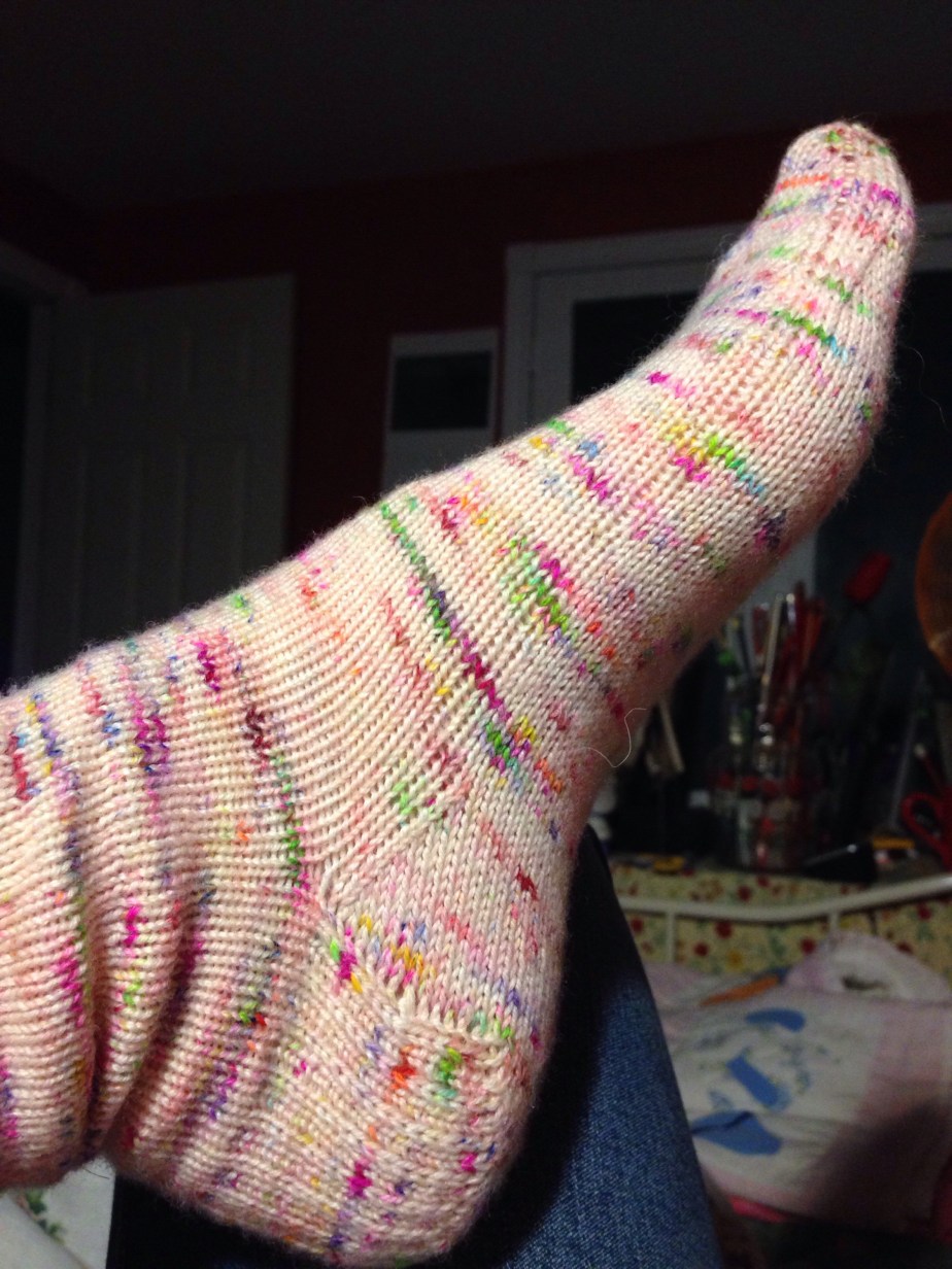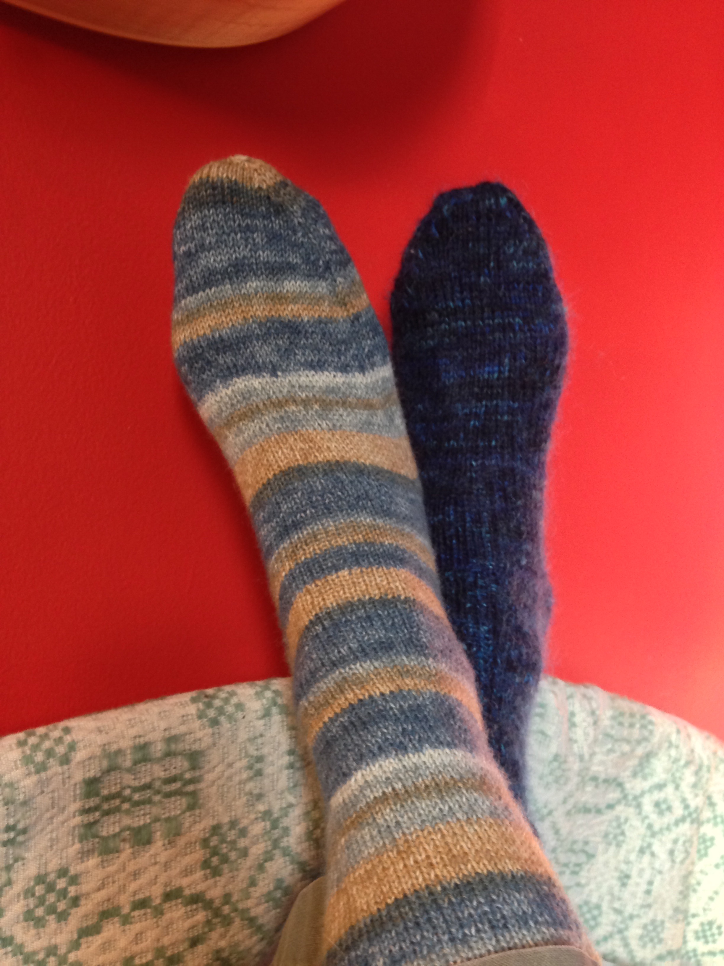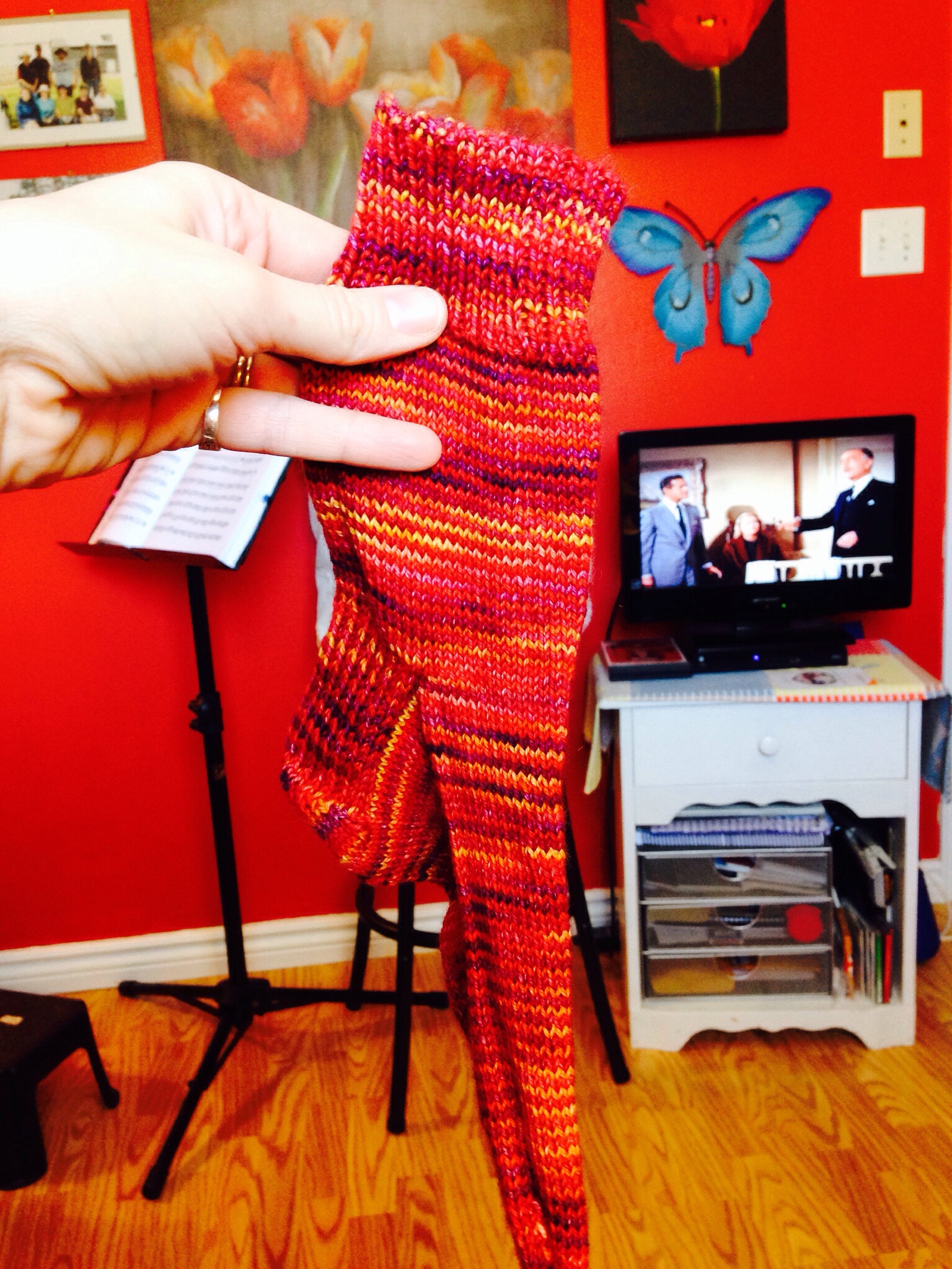 I’m having a relaxing day. Trying to finish D’s Sangria socks. I’m on the last one while being entertained by Hitchcock’s “Dial M for Murder” yet again. Next I think I will watch “Rope” by Hitchcock. Knitting with a cashmere blend is rather nice. If I have any left over I’m going to use it in a shawl I think. There are so many uses for left over sock weight yarn.