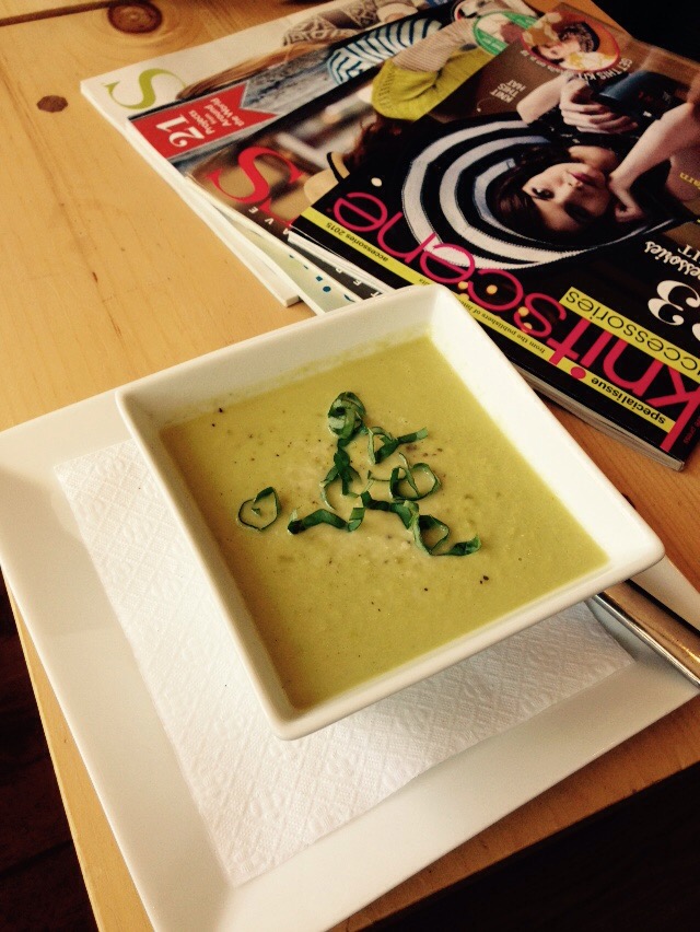 Finished half of my Penny vest, I’m loving this colour. Perfect for warmer months ahead. I had a wonderful lunch from Frais Catering today. Pea soup with a mustard butter with ham and Gruyere puff pastry.