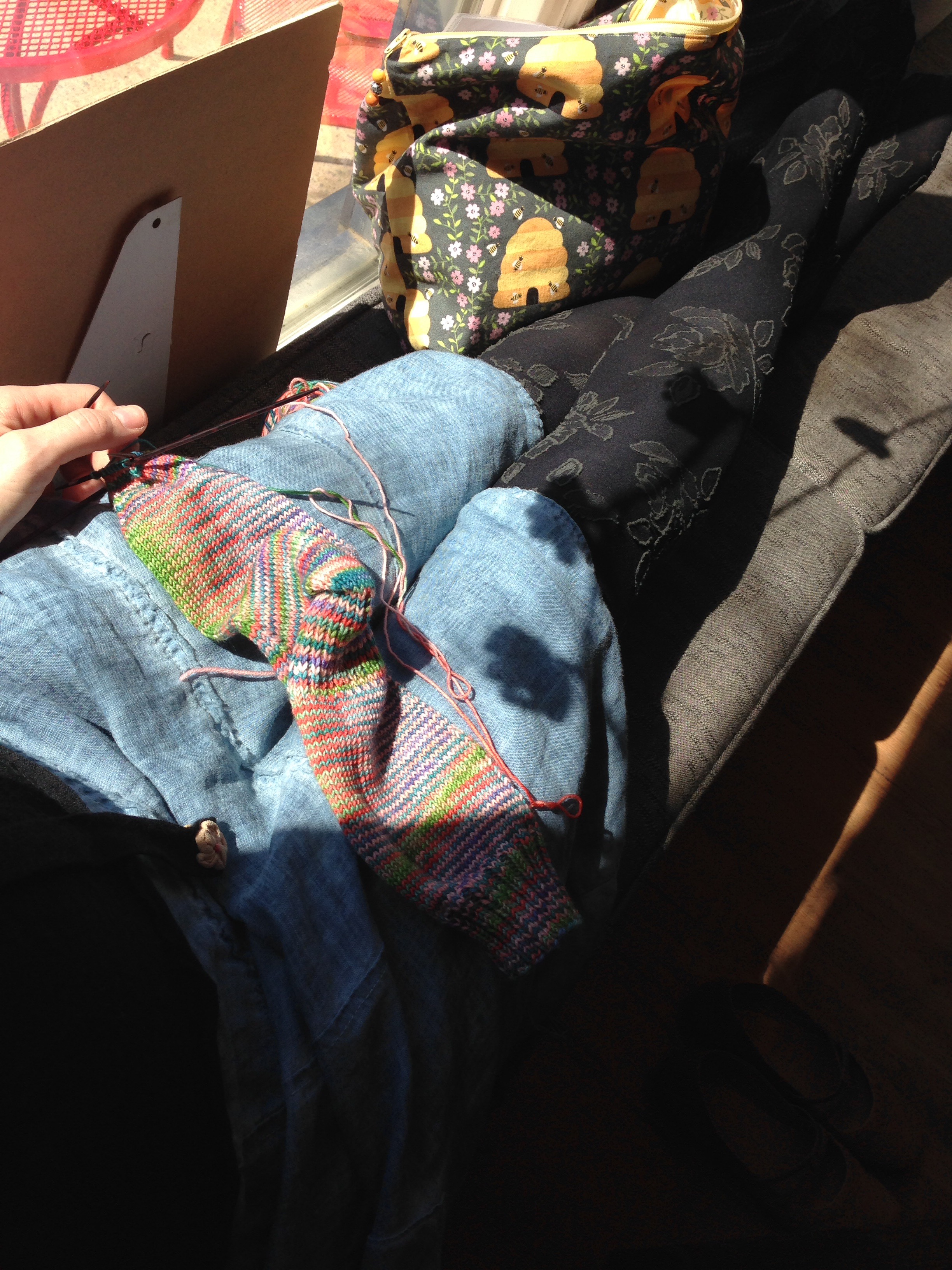 It was delicious. Starting my Love Socks, a free pattern on Ravelry. I saw a sample knit at The Loop yarn shop awhile ago and so they have been in my queue ever since patiently waiting.